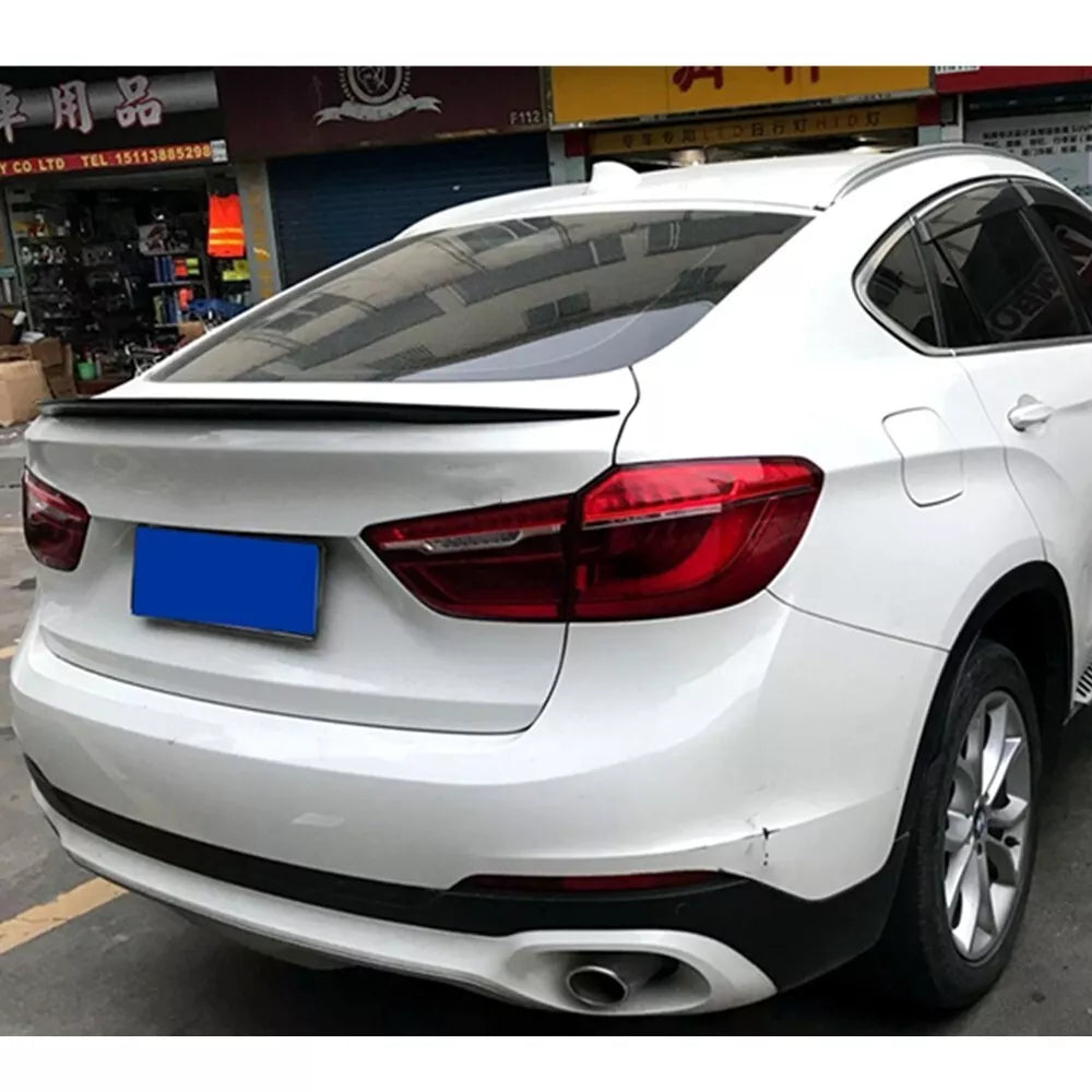 Enhance the sporty and aggressive look of your BMW X6 F16 (2014-2019) with this glossy black rear spoiler. Designed for a perfect fit, this high-quality ABS plastic spoiler improves both aesthetics and aerodynamics, giving your vehicle a more dynamic and stylish appearance.
